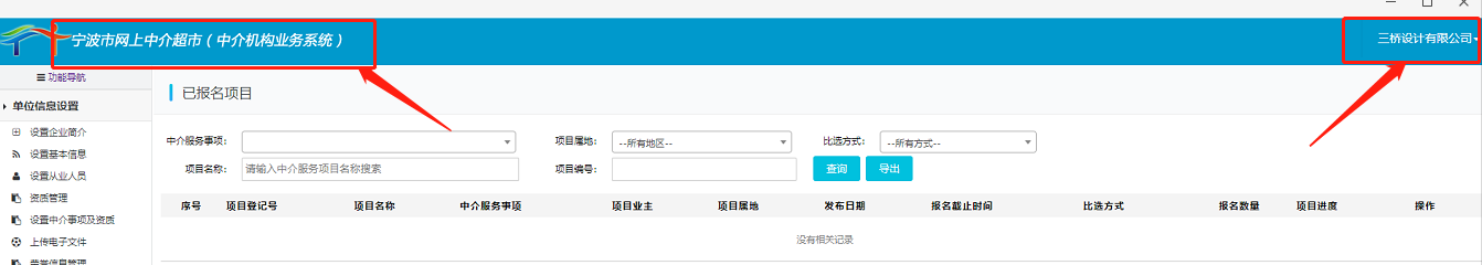 浙江省做沿海城市,各个市的发展都非常好,这样就形成了各个市都有自己独立系统,比方说发布项目的中介超市,目前宁波就有自己的网站。这样方便政府项目的公示,也方便各投标单位去寻找投标资源。应客户需求,我们最近就入驻了宁波的中介服务超市,